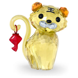 Celebrate 2022 with this cute tiger ornament, which perfectly embodies the charming and friendly character that those born in the Year of the Tiger are said to have. Very playful and fun, the tiger holds a lucky, Chinese lantern on its tail. Sparkling with 390 facets of yellow, brown, black, clear and red crystal, this winning design would be a perfect gift for Chinese New Year or any other occasion, especially when combined with the matching Tiger ornament. Decoration object. Not a toy. Not suitable for children under 15.