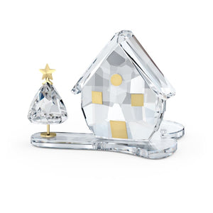 Fusing 233 clear, crystal facets with brushed, champagne gold-tone, metal accents, this timelessly elegant tealight holder features a miniature house and tree. Full of warmth and Swarovski magic, it would make a beautiful addition to any festive table or decorative display. Decoration object. Not a toy. Not suitable for children under 15.