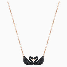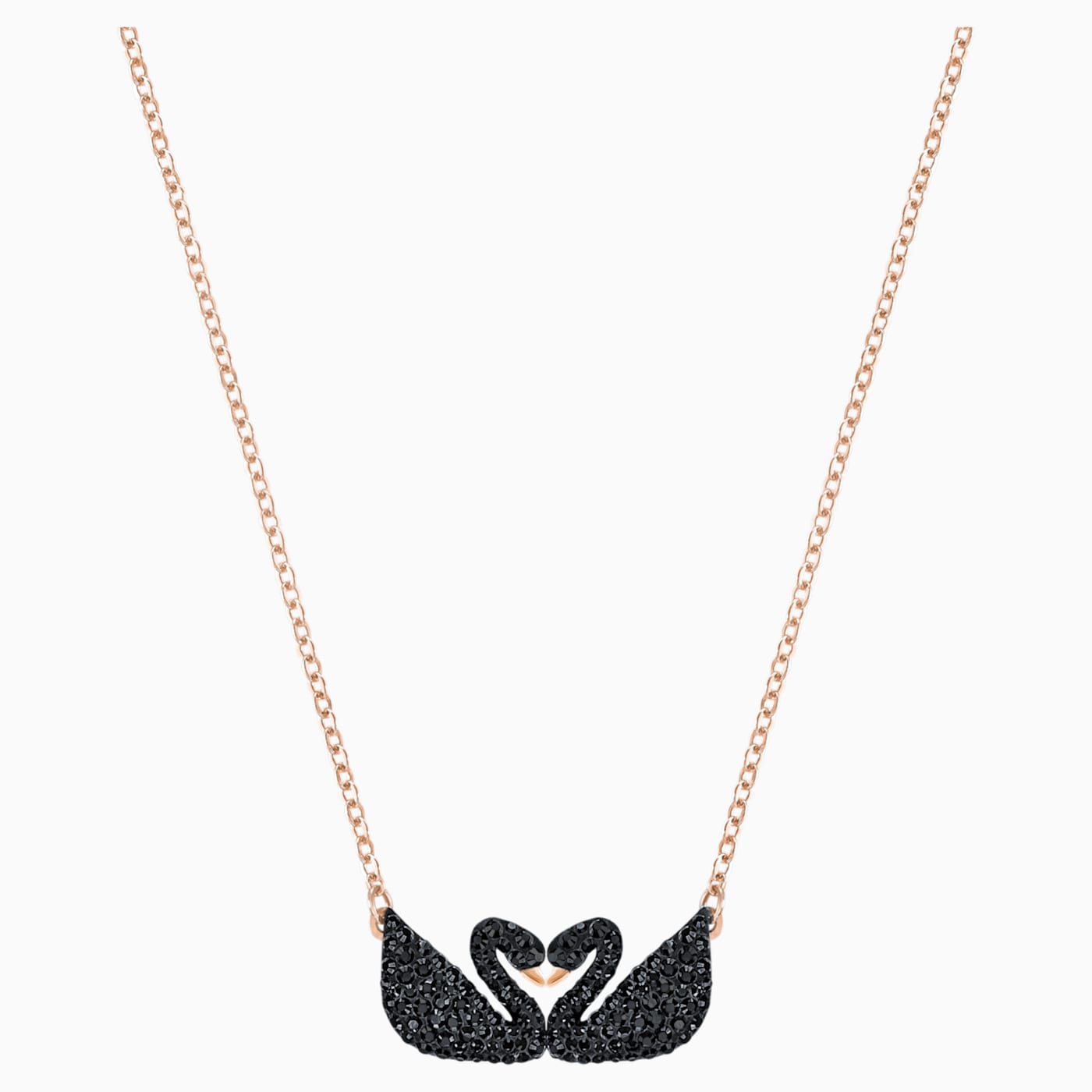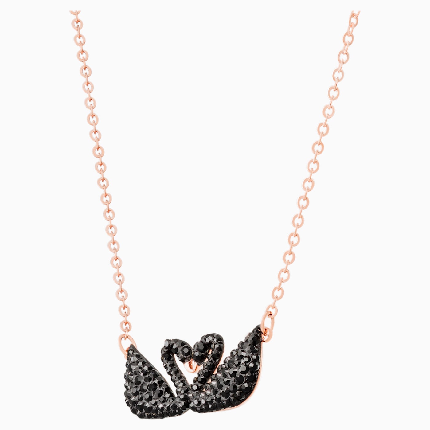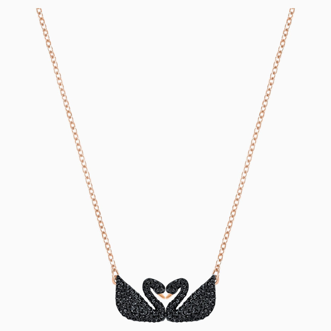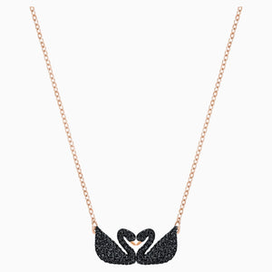 SWAROVSKI ICONIC SWAN NECKLACE, BLACK, ROSE-GOLD TONE PLATED