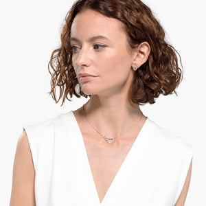Eternal love: This mixed metal finish jewelry set by Swarovski combines romance and glamour. It consists of a pair of pierced earrings and a necklace. The earrings are shaped like infinity symbols, while the necklace features the same symbol intertwined with a heart. Each piece is set with white stones that gleam brilliantly whenever the light hits them. A single larger, brilliant white stone on each piece adds extra sparkle. This Swarovski set is the perfect gift for a romantic occasion.