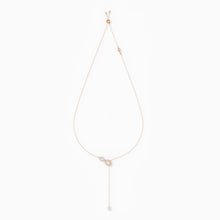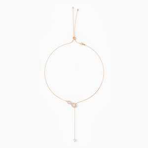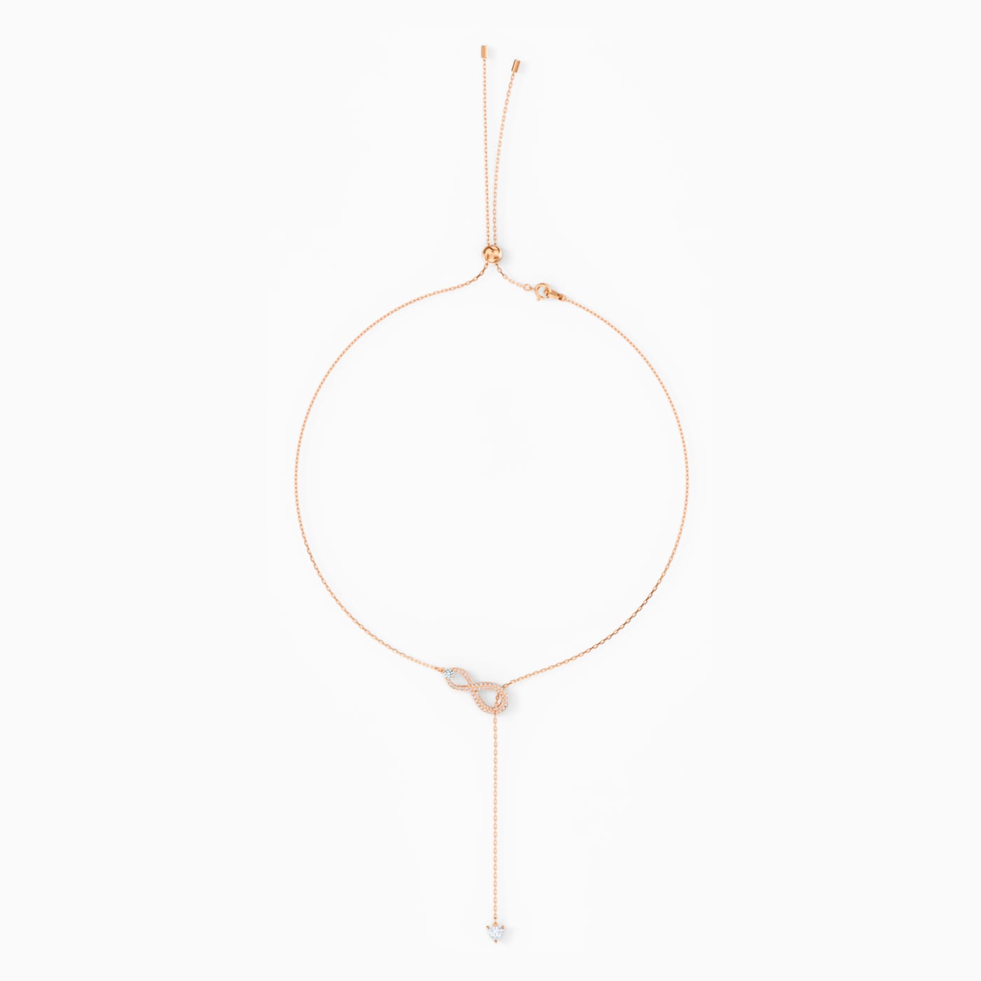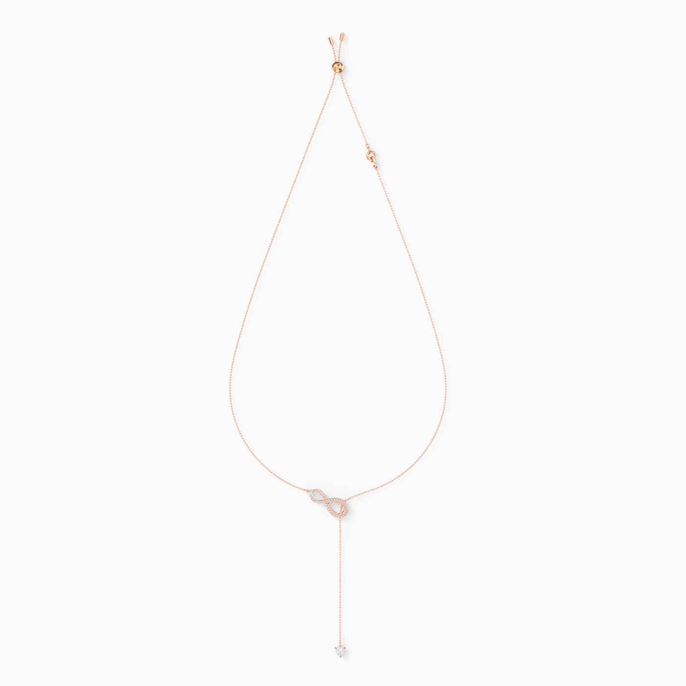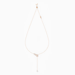 This Y necklace by Swarovski is the perfect choice for everyday chic. It features a rose-gold tone plated chain which is looped through an infinity symbol studded with sparkling stones. A single stone at the end of the chain adds a striking finishing touch. A charming gift for any occasion.