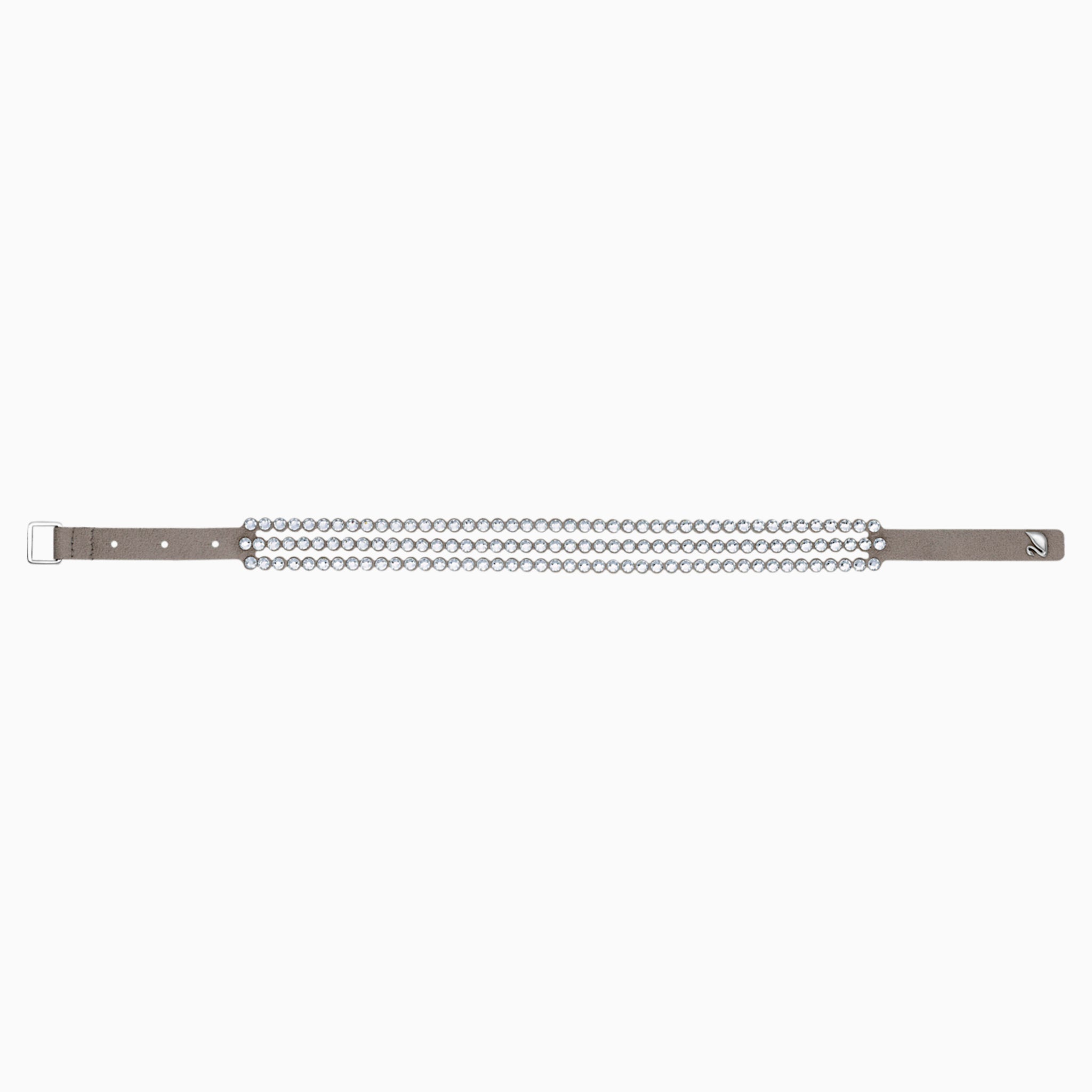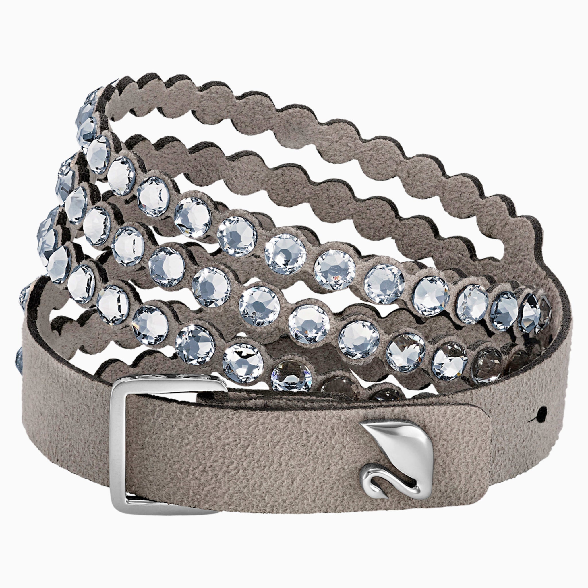 This must-have design sparkles brilliantly with clear crystals on soft gray Alcantara® fabric, with an adjustable closure featuring a Swarovski swan-shaped button. Wear it solo, as a choker, or stacked with other Swarovski Power Collection bracelets to create your own arm party. This double-wrap bracelet can be adjusted to three different lengths to fit different wrist sizes.