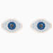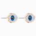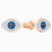 This cool-classic pair of stud pierced earrings is inspired by the evil eye motif, an ancient symbol of protection. The design combines rose-gold tone plated metal with subtle blue and clear pavé embellishments. Ideal for everyday wear, or a thoughtful gift idea.