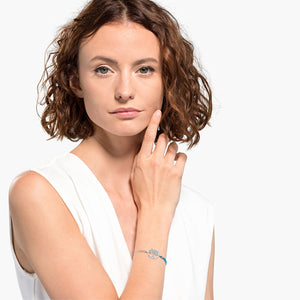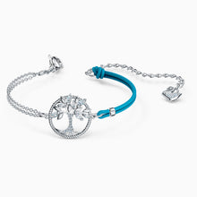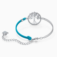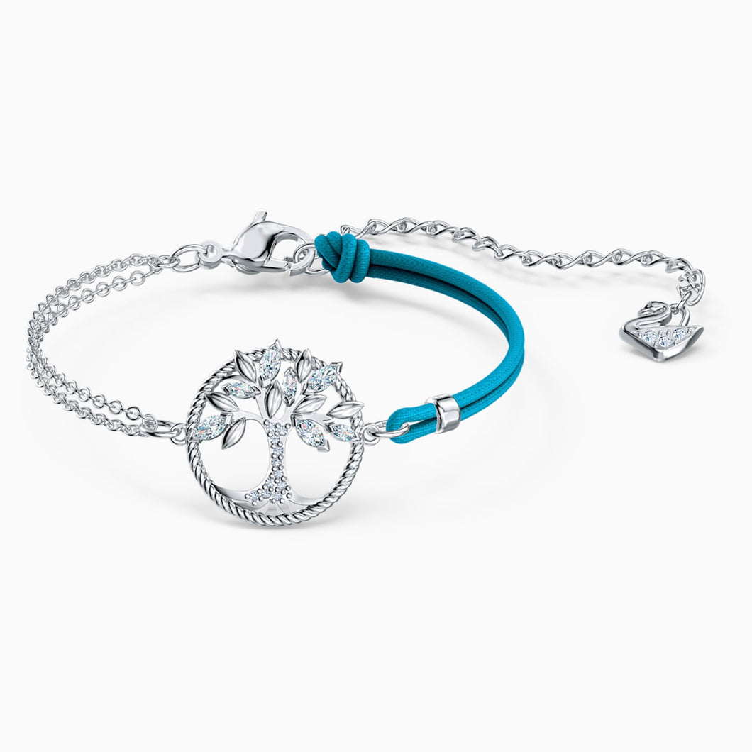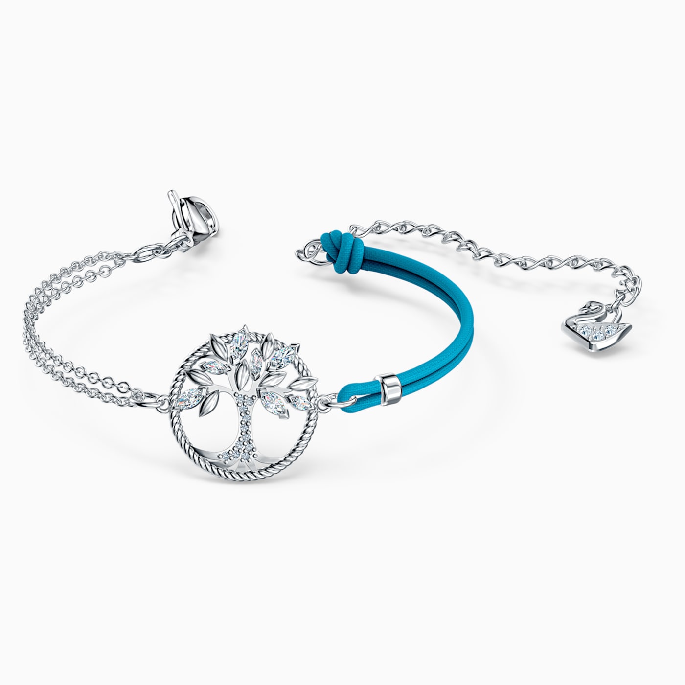 This Swarovski bangle depicts an expertly crafted tree. Gleaming stones line the branches, creating an impressive sparkle that complements the dark green cord and rhodium plating. Ideal for gift giving.