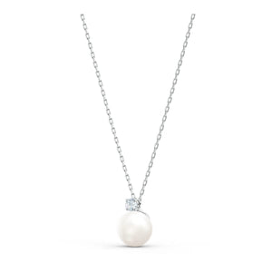 Classic appeal and refined design distinguish this necklace by Swarovski. A single crystal pearl on a shimmering chain takes center stage, while the chain itself closes with a lobster clasp. The crystal pearl is embellished by a round white stone, whose sparkling facets accentuate its soft sheen. This necklace is a beautiful, timeless addition to everyday looks, and enriches casual outfits with a brilliant accent that is meant to last forever.