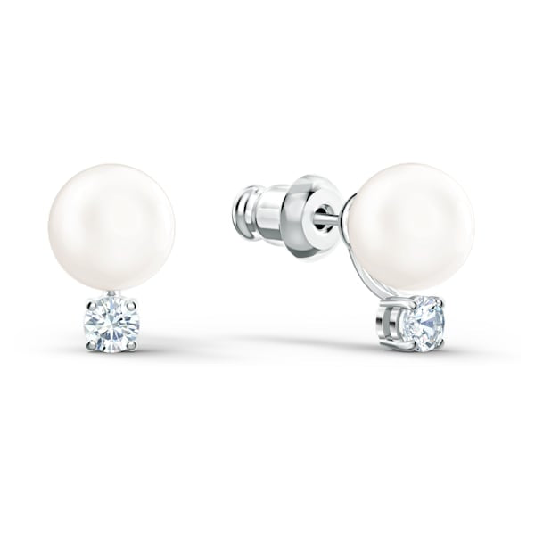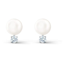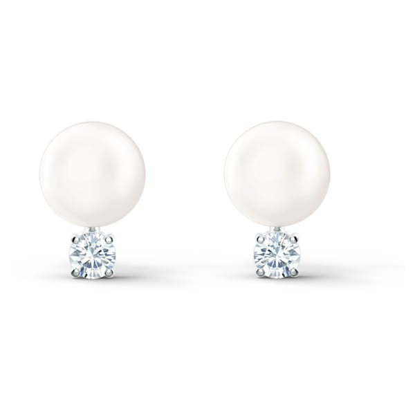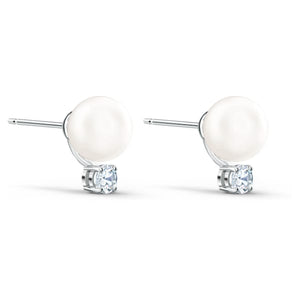 Beauty that is meant to last forever: This pair of pierced earrings by Swarovski is characterized by timeless design. A beautiful crystal pearl is its focal point, with a faceted white stone set below that adds glittering sparkles to the design. A subtle yet elegant look for casual occasions, these earrings are a great choice for everyday styles.