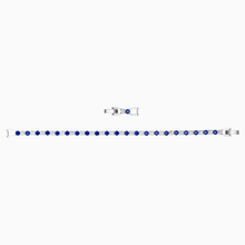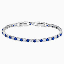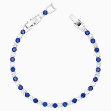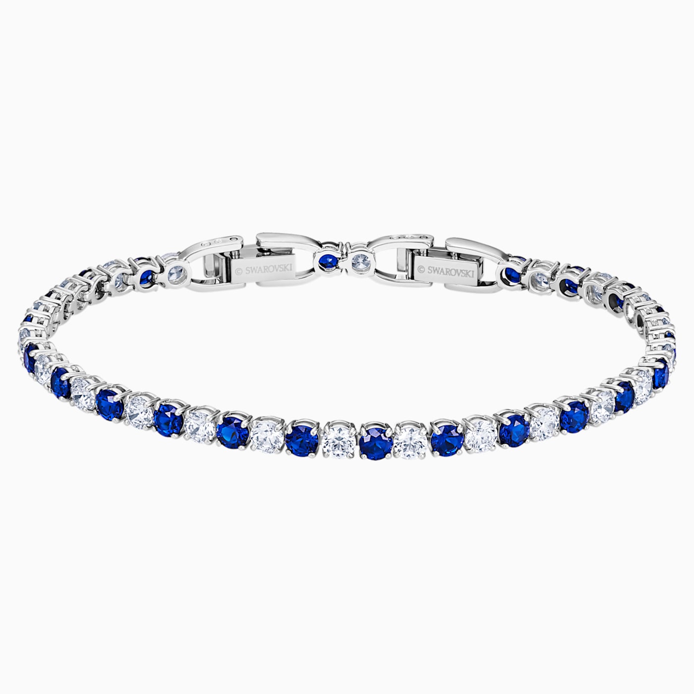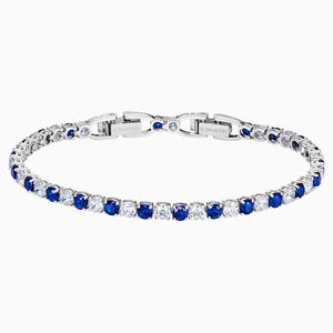 Full of subtle sparkle and classic style, this stunning Tennis Bracelet will enhance any outfit. It features rhodium plating and a strand of prong-set blue and clear stones. An elegant must-have for everyday wear.