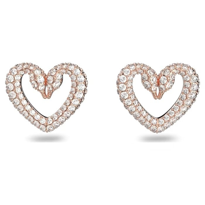 Ideal for everyday dressing, these pierced earrings represent a new direction for the iconic Swarovski swan emblem. Formed in the shape of a heart, this rose gold-tone plated pair is designed to spark the imagination with dazzling pavé crystals. The perfect gift for a loved one – or yourself. These earrings are part of the Una Family, designed for Collection III.
